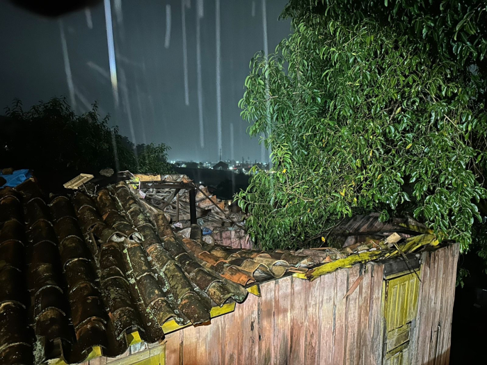 Algumas casas tiveram os telhados danificados e, assim que a Defesa Civil foi acionada, foram prontamente providenciadas lonas para evitar o acúmulo de água no interior das residências e proteger as famílias afetadas.