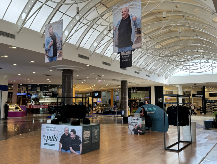 Foto: Divulgação Apostando na elegância e no afeto, o Farol Shopping lança a campanha de Dia dos Pais com o tema “Estilo que se multiplica”. De 1 a 10 de agosto, ou enquanto durarem os estoques, os clientes que realizarem R$ 350 em compras poderão trocar suas notas fiscais por uma camiseta preta exclusiva da Gandhi.