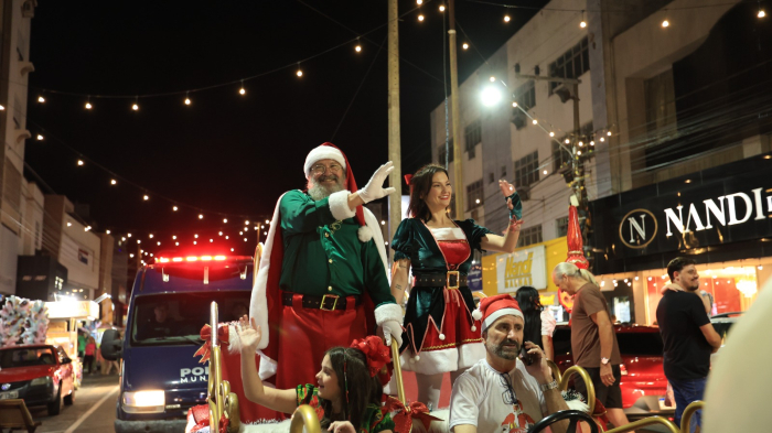 No local, o Papai Noel fará a devolução simbólica da chave da cidade, encerrando oficialmente sua participação na programação natalina. A saída do desfile está prevista para as 19h30.
