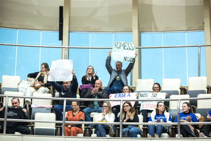 “Os alunos da Unisul ficaram sem bolsas, mesmo estando aptos, e famílias ficaram endividadas por propagandas de garantia de bolsas. Foi muito importante todo o esforço feito pelos deputados para que esses alunos não ficassem desamparados. O que a gente pede não é nada demais, e sim que eles não saíssem prejudicados”, afirmou a secretária geral do DCE Unisul Norte, Maria Clara Santos Garcia.