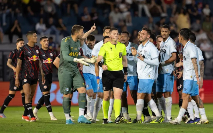 Em Bragança Paulista, a revolta foi gremista. O Grêmio, derrotado por 1 a 0 pelo Red Bull Bragantino, contestou a marcação do pênalti que decidiu a partida e a expulsão do zagueiro Kannemann ainda no primeiro tempo. O lateral Marlon chamou a arbitragem de “vergonhosa” e afirmou que o clube vem sendo prejudicado: