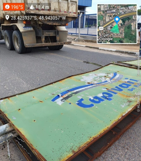 Foto: Reprodução A Defesa Civil de Capivari de Baixo, em parceria com as Secretarias de Infraestrutura e o Departamento da Cosip, removeu na manhã de terça-feira (12) o portal de entrada do bairro Vila Flor.