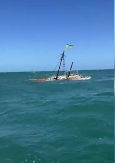 Foto: CBMSC/Divulgação Uma escuna com cinco pessoas a bordo naufragou no início da tarde deste sábado (20) em uma praia do município de Laguna, no Sul de Santa Catarina. Segundo o Corpo de Bombeiros Militar, o naufrágio ocorreu em questão de segundos e os tripulantes foram resgatados com ferimentos leves.