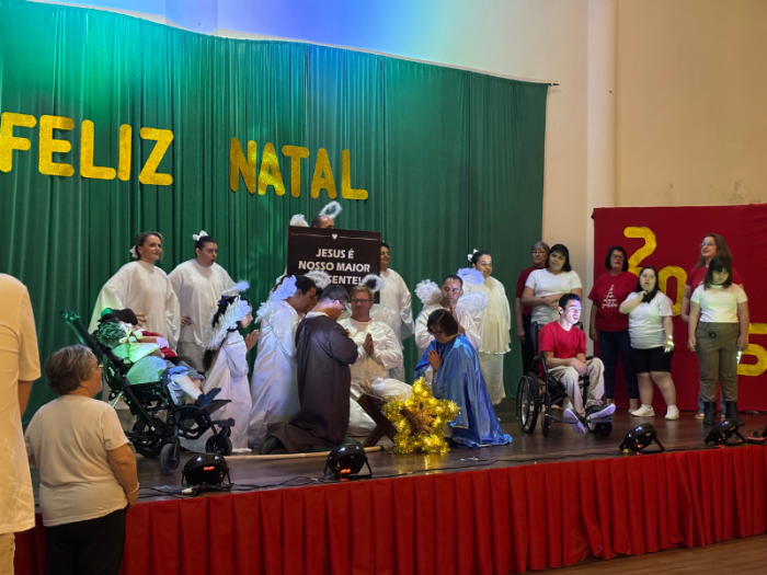 Durante a confraternização, os participantes acompanharam apresentações realizadas pelos alunos da Apae, incluindo a encenação do nascimento de Jesus. A instituição, que há 29 anos atua nas áreas de educação, saúde e assistência social para pessoas com deficiência intelectual e múltipla, atende mais de 50 alunos ao longo do ano.