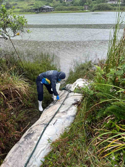 Devido à dificuldade de acesso ao local, a identificação da espécie só foi confirmada após o recolhimento. O filhote, um macho com 5,10 metros de comprimento, já estava em estado avançado de decomposição, o que inviabilizou a realização de exames mais detalhados. O corpo foi enterrado nas proximidades da lagoa, seguindo os protocolos ambientais adequados.