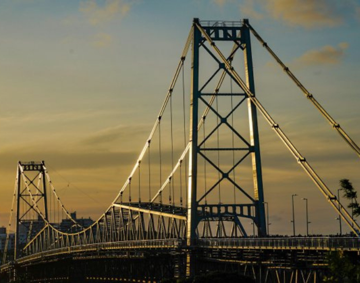 A estrutura centenária integra a Ilha de Santa Catarina ao continente e permanece como a maior do planeta em sua categoria técnica de sustentação por barras de olhal.