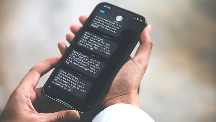 Para quem não é cadastrado no SMS, a Defesa Civil utiliza a tecnologia de cell broadcast, que envia alertas diretamente para a tela dos celulares conectados às redes 4G ou 5G em áreas de risco. O sistema é automático e acionado em situações de risco elevado ou extremo.