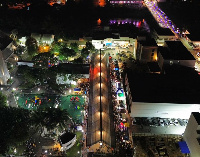 Um dos momentos mais esperados foi o acionamento da decoração natalina, que também marcou o início oficial das celebrações de fim de ano no município. A chegada do Papai Noel arrancou sorrisos de crianças e adultos, dando início ao espetáculo de luzes que tomou conta do novo espaço.