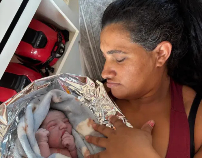 Bruna, de 35 anos, deu à luz ao seu quinto filho no bairro Campo Bom durante o trajeto para a unidade de saúde na manhã de sábado.
