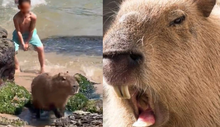 Um vídeo que circula nas redes sociais registrou o momento em que uma capivara reagiu a provocações no Deck da Barra Norte, em Balneário Camboriú, no último fim de semana. O animal, que descansava na areia, tornou-se agressivo após uma criança arremessar pedras em sua direção.