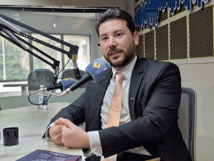 Foto: Victor Guterres O advogado Dener Vieira Nascimento, coordenador de Regularização Fundiária e Habitação de Capivari de Baixo, participou de entrevista na Rádio Litoral nesta segunda-feira (3) para detalhar o andamento do programa “Minha Matrícula” e os desafios do município na execução do Reurb a política nacional que garante o direito à propriedade de imóveis consolidados de forma irregular.
