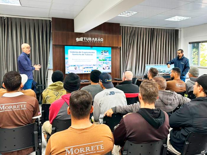 Foto: Tubarão Saneamento/Divulgação A Tubarão Saneamento realizou uma reunião com as equipes terceirizadas das empresas responsáveis pelas obras de implantação da rede de esgoto. O encontro aconteceu nesta quarta-feira (11) e teve como objetivo reforçar diretrizes técnicas para aprimorar a qualidade das obras de saneamento realizadas no município. A pauta principal foi a repavimentação, etapa essencial para a recomposição das vias após intervenções na rede de água e esgoto.