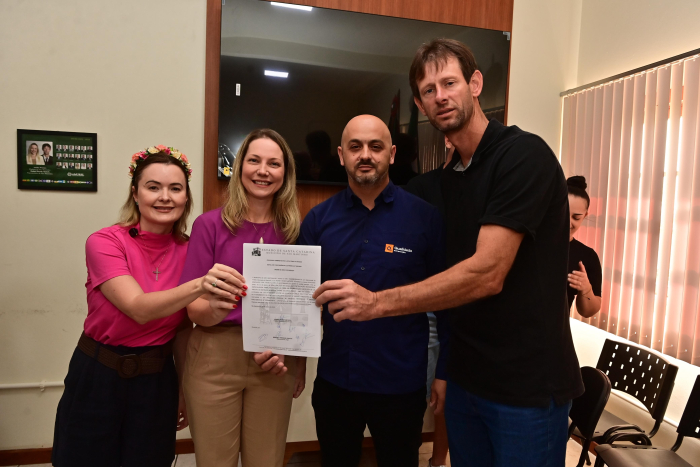 A solenidade ocorreu no Paço Municipal e contou com a presença da deputada federal Júlia Zanatta, representantes da empresa vencedora da licitação, secretários municipais e lideranças políticas.