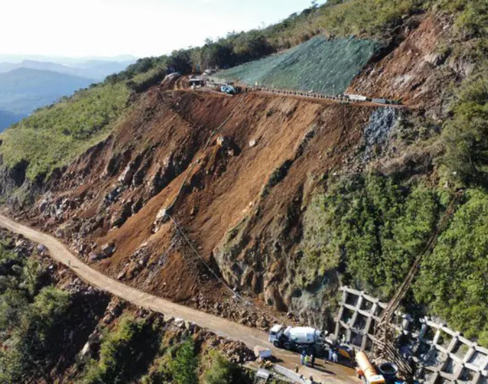 A volatilidade da montanha foi testada em 2024, quando um deslizamento massivo destruiu 210 metros da rodovia, exigindo um investimento emergencial de R$ 62 milhões. Para conter a fúria da natureza, os engenheiros aplicaram soluções de ponta: cortinas atirantadas de até 50 metros de altura, técnica de solo grampeado e instalação de telas de alta resistência na porção inferior da encosta. É uma engenharia de resiliência que justifica cada ano de execução.