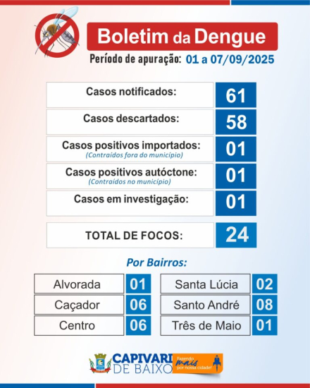 Com este caso, o município contabiliza 24 focos do Aedes aegypti somente em 2025, o que acende um alerta para a necessidade de redobrar os cuidados de prevenção.