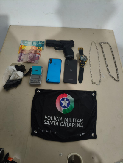 Um adolescente de 16 anos foi apreendido pela Polícia Militar na madrugada deste domingo (8) no Centro de Imaruí, no Sul de Santa Catarina, suspeito de envolvimento com tráfico de drogas e porte de simulacro de arma de fogo.