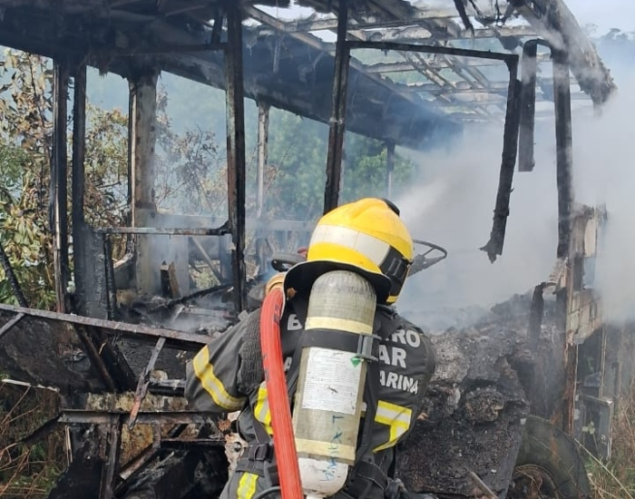 Ao chegar no local, a guarnição constatou que o fogo destruiu automóveis e inclusive um ônibus. Um homem relatou à guarnição que o terreno pertencia a uma empresa e que os veículos incendiados faziam parte da frota da prefeitura municipal e estariam aguardando processo de descarga há algum tempo.