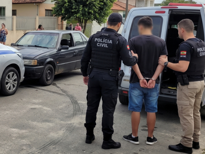 Imagem gerada por Inteligência Artificial. Dois homens, de 24 e 30 anos, foram presos pela Polícia Militar na madrugada desta terça-feira (21) em Braço do Norte, após uma perseguição que começou no centro e terminou no trevo da cidade. A ocorrência, registrada à 01h23, envolveu os crimes de porte ilegal de arma de fogo e tráfico de drogas.